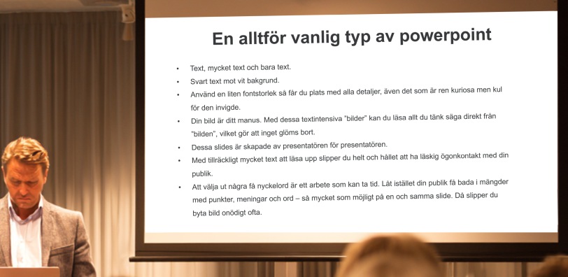 Din powerpoint är inte ditt manus. Den är din möjlighet att lyfta fram det viktigaste. Att poängtera. To make a point, a powerpoint.